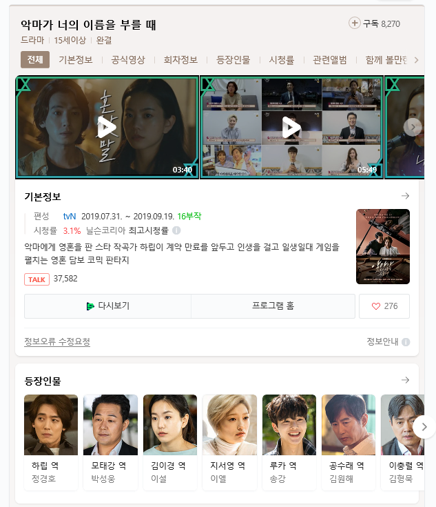 [한드] [ 악마가 너의 이름을 부를때 ] 정경호 박성웅 이설 이엘 01화 - 16화 [ 완결 ]